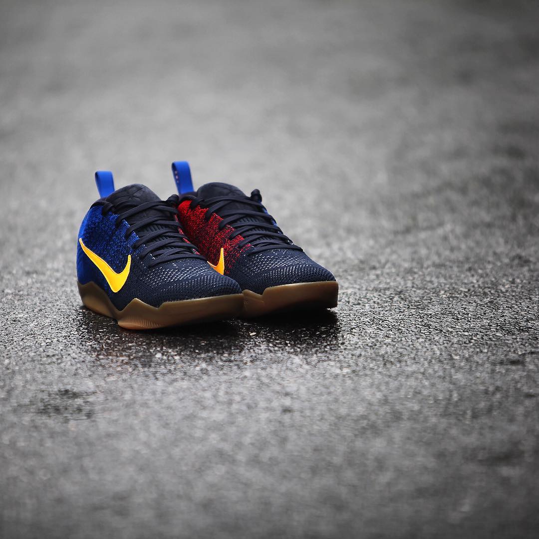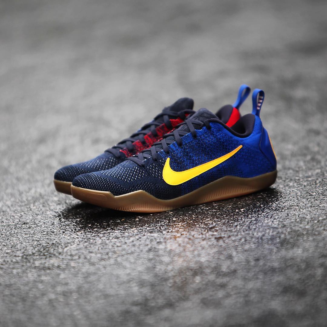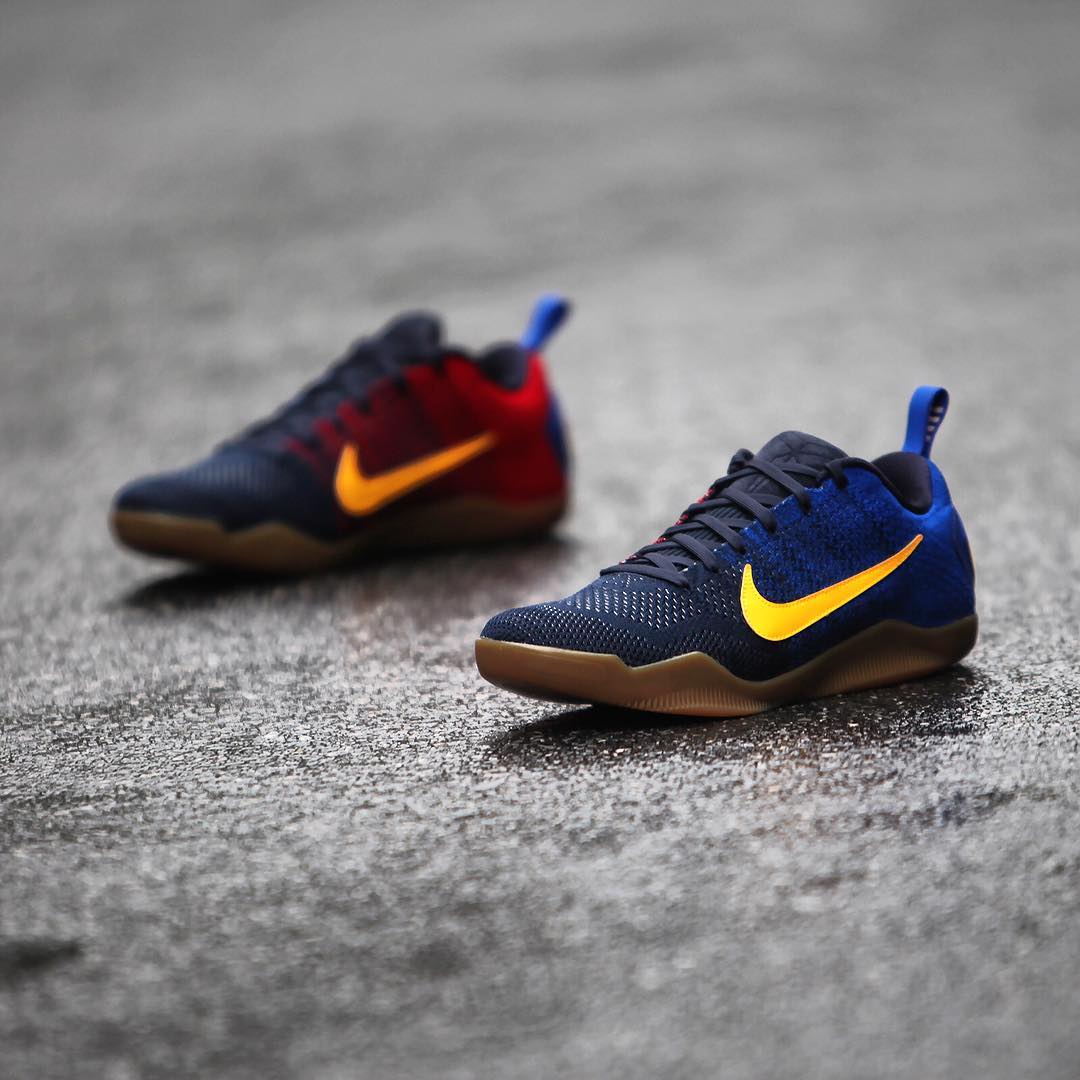其中的 Kobe 11 Elite Low “Mambacurial” 以标志性的巴萨配色呈现,蓝红鞋身辅以夺目的黄色 Swoosh,生胶外底的托衬效果也极为不凡。