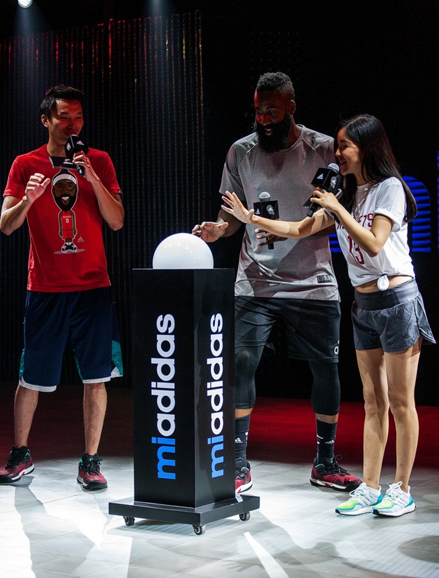 向在场的球迷们问好后,哈登代表 adidas 宣布今夏顶级实战鞋款 Crazylight Boost 2016 将正式加入 miadidas 这个装备定制大家庭。作为 adidas 在国内推出的定制业务,miadidas 可使你随时根据迸发的灵感,设计出自己心目中的运动鞋或服饰,从数以千计的配置中进行选择,从而彰显自己的独特风格(详情点击 miadidas 国内官网),带来全新的个性体验。