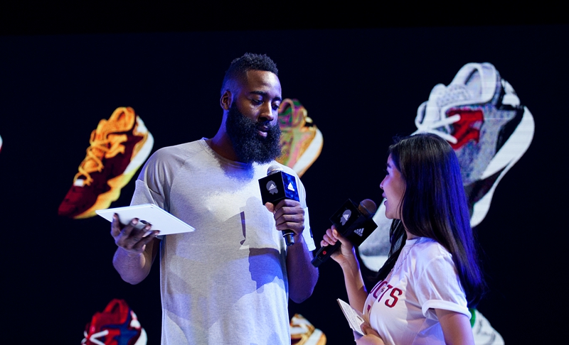 9 月 7 日,NBA 休斯顿火箭队著名球星詹姆斯·哈登首次以 adidas 品牌代言人的身份空降北京,为其代言的 Crazylight Boost 2016 和 Project Harden 个人系列展开首站中国之行。