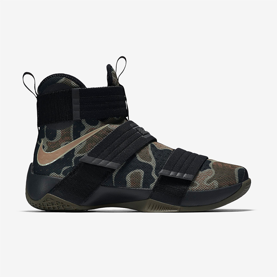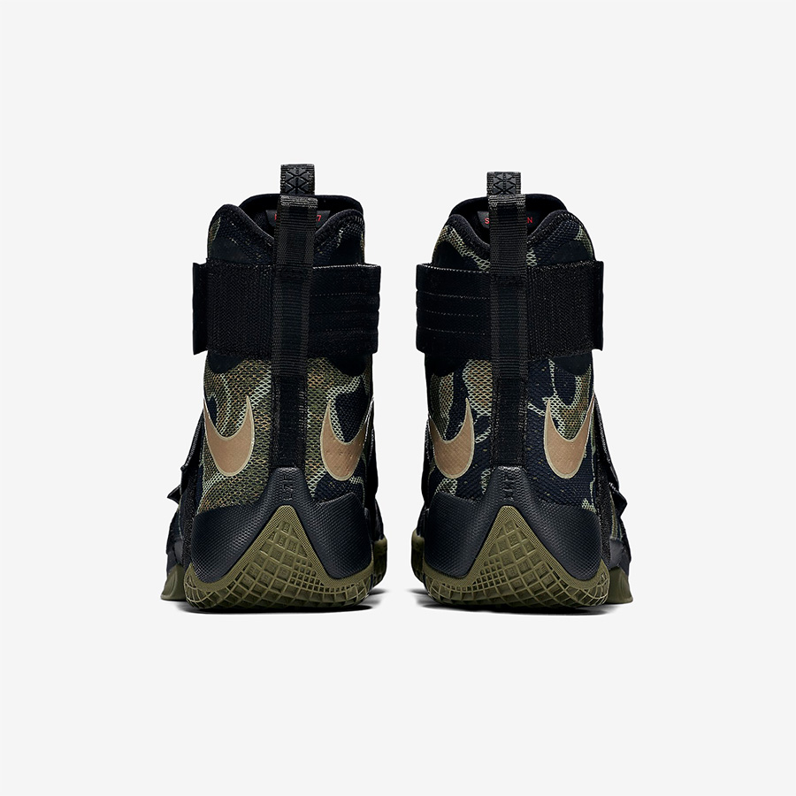 詹姆斯的士兵系列已经步入第 10 个年头,这双军事迷彩配色的 Nike LeBron Soldier 10 “Camo” 则带来一款颇具战斗气息的新品。
