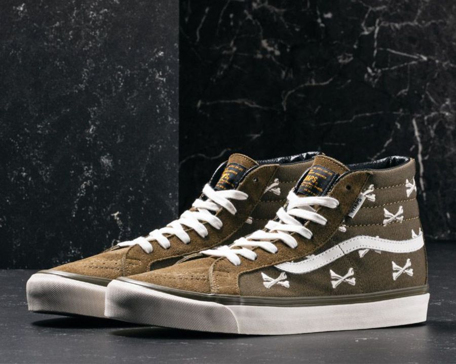 WTAPS 携手 Vans 带来全新的人气联名!以 Crossbones 刺绣骨头元素作为主线灵感,此番通过 Vans Vault 高端支线选用了 Sk8-Hi、Chukka Boot、Authentic 作为蓝本,带来三鞋六色的系列呈现! 目前已经在全球发售,中国区的店铺发售也已经进行,人气极高!目前在转卖市场上已经是 ¥1500~¥2000 左右的价位。