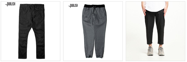 而以 Jogger Pants 束腿裤作为主打产品的 Publish,也有诸多的款式可供选择。