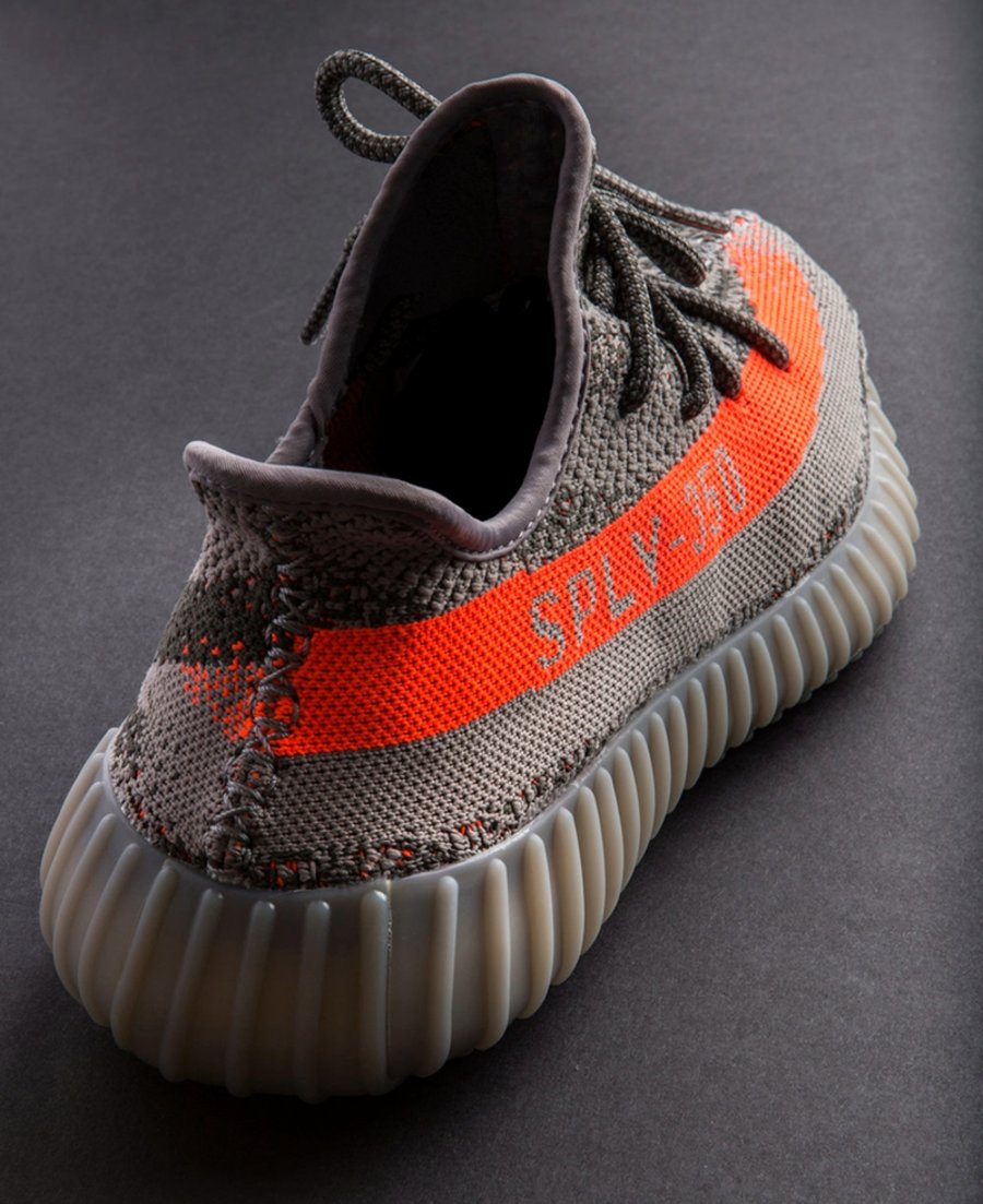 作为坎爷曝光度最多一款 V2 鞋型,该鞋配色采用 Stealth Grey 灰色纹理呈现的 Primeknit 编织鞋身辅以夺目的亮橙色条纹装饰,鞋身侧面的 SPLY-350 字样则表明了它全新的二代目身份,使其更具风骚。全新设计的半透明外底依然搭载着舒适度极佳的全掌 Boost 科技,是否自带 Glow in Dark 夜光效果暂不得而知。