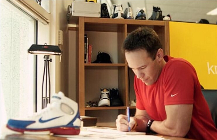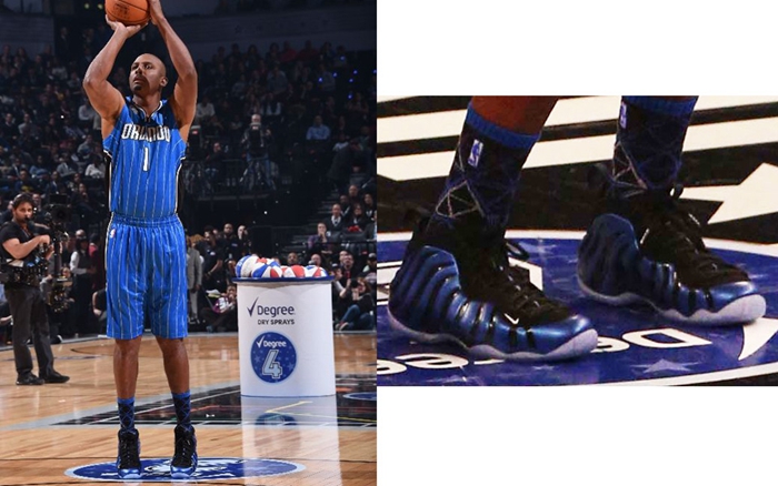 目前这双 DIY 配色在近年也被 Nike 投入市售,就是以套装形式发售的 Nike Air Foamposite One “Sharpie”。并在 2015 年的全明星赛亲自着用了这款再度复刻的“禁穿”战靴。