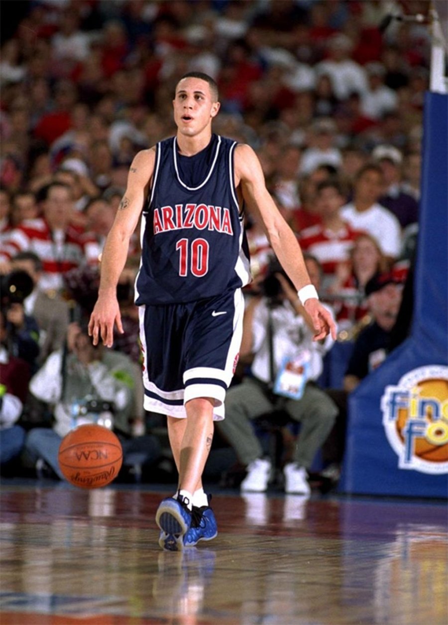 首位穿着 Air Foamposite One 比赛的人是素有白魔鬼之称的麦克 毕比,他先于“便士”哈达威穿着此鞋在 NCAA 赛场上亮相!此时哈达威正在穿着 Nike 为他打造的第二款个人签名鞋 Penny 2 驰骋在 NBA 的赛场上。