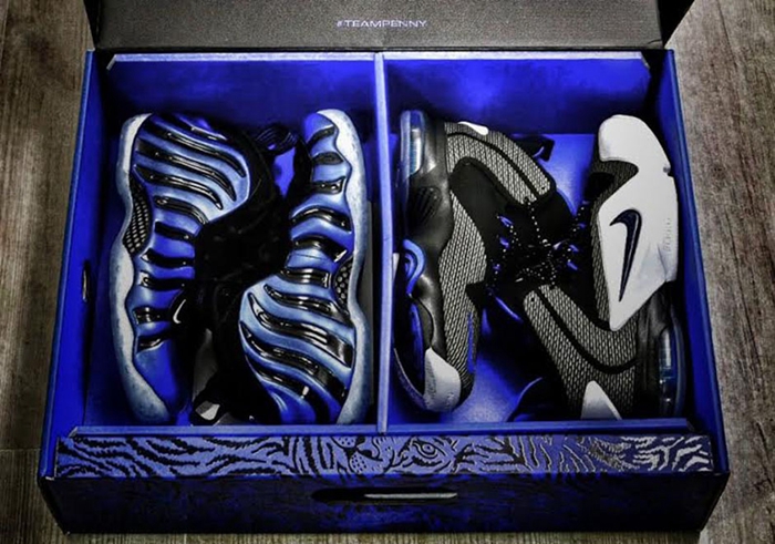 跟 Air Jordan 1 “Banned”被 NBA 联盟禁穿类似,在 1997 年,联盟依然对于球鞋的颜色有着严格的管控,觉得球鞋上只有蓝色没有足够的黑色,无法搭配魔术队的蓝黑球衣!当时 Penny 为了能穿着这款前卫战靴比赛,只好亲自动手,用黑色马克笔在蓝喷上画上了黑色条纹。