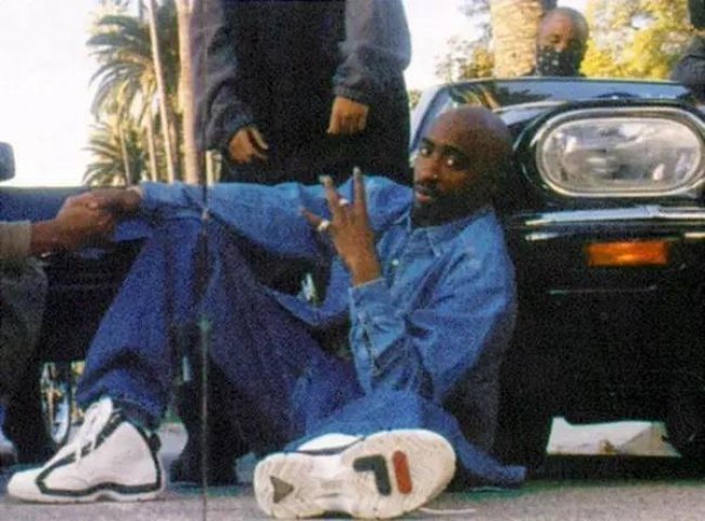 以其极简设计并且极具建筑造型感外形的FILA Grant Hill II一经推出便受到人们的喜爱,连10000%支持美国本土品牌的说唱之神Tupac(2PAC)也为这双鞋改变了自己的信仰。相信很多喜爱2PAC的歌迷会记得他这张穿着FILA 96帅气的照片。