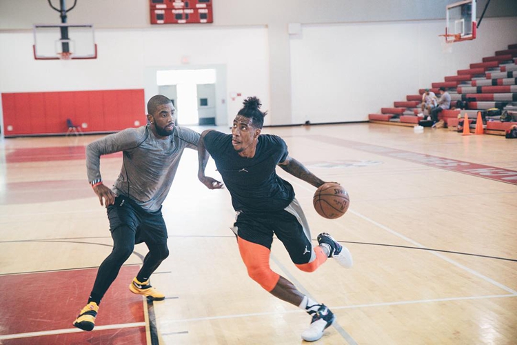 一直作为 adidas 签约选手的骑士队年轻球员伊曼·香珀特,经常穿着 adidas 旗下各式鞋款在赛场上驰骋比赛。 近日,在赛季前的训练中,香珀特令人意外的上脚好队友欧文的战靴亮相,并身着一袭 Nike 装备,令人不禁猜测是否与 adidas 合同到期打算转投 Nike 麾下?如果真的如此,下赛季是否有个人 PE 鞋款还真是让人期待!