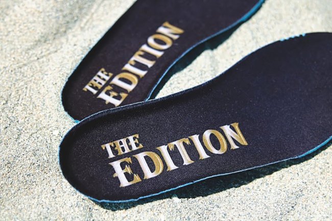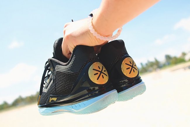 这双 The Edition Boutique x Li-Ning Way of Wade 4 以黑金装扮呈现,在展现华丽气质的同时,也不忘以迈阿密的南海岸风情注入。蓝水晶大底,以及鞋底上的棕榈树纹理,都颇具当地特色。