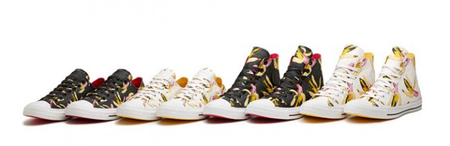 以沃霍尔标志性的波普风范呈现,以香蕉图案为主题,带来 Chuck Taylor All Star 经典鞋型的全新配色,同时还有配套服饰登场。