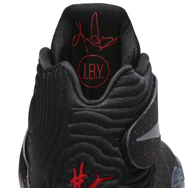 这双 Kyrie 2 “Black Speckle” 以血色斑点的魔术贴紧紧缚在纯黑色鞋面之上,中底的泼墨设计与魔术贴交相辉映,蓝色水晶外底营造出该鞋的机动特性。鞋舌与后跟红色的标志象征着欧文在球场中的血性。鞋舌内 “Just Be You” 缩写更激励粉丝们建立起只做自己的独立个性。