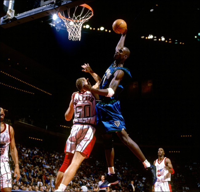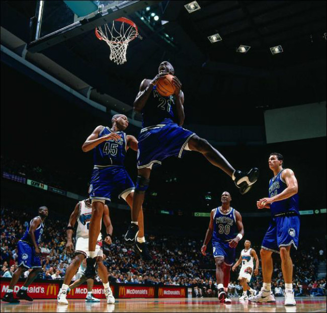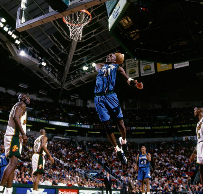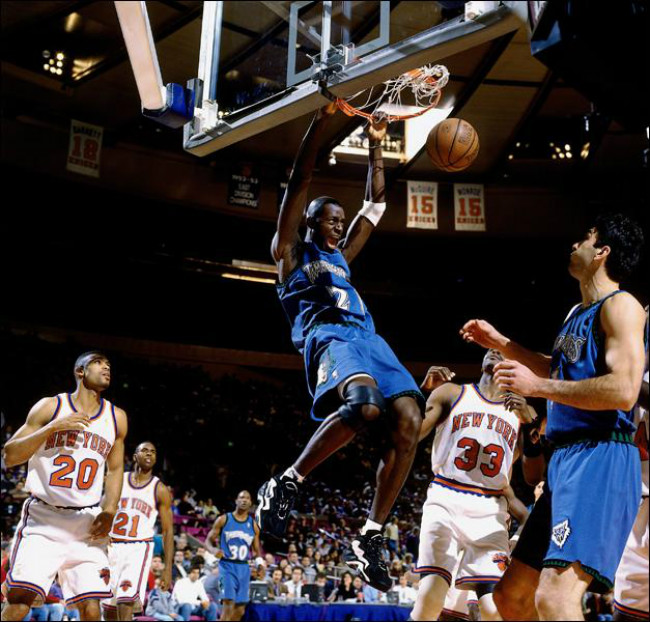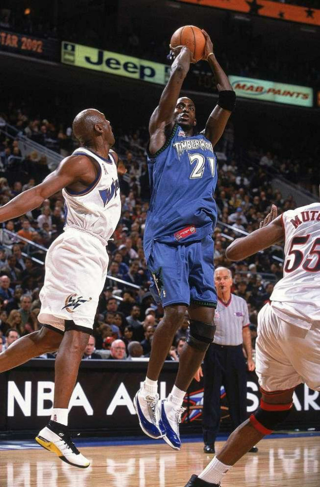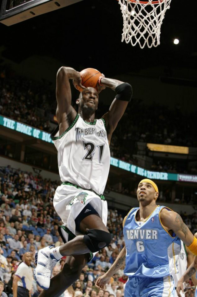 1995 年加内特以首轮第五顺位进入 NBA,这位年轻的高中生跳过大学直接进入联盟打球。作为首位高中生新秀的他并不示弱,为联盟带来了一个属于自己的时代。12 年的森林狼生涯,带领球队连续 8 次杀进季后赛。随后 6 年加入凯尔特人组成三巨头,并在第一年拿下总冠军。职业生涯末期辗转篮网之后,在 2015 年 2 月 19 日加内特重新穿上 21 号球衣,回到明尼苏达森林狼。