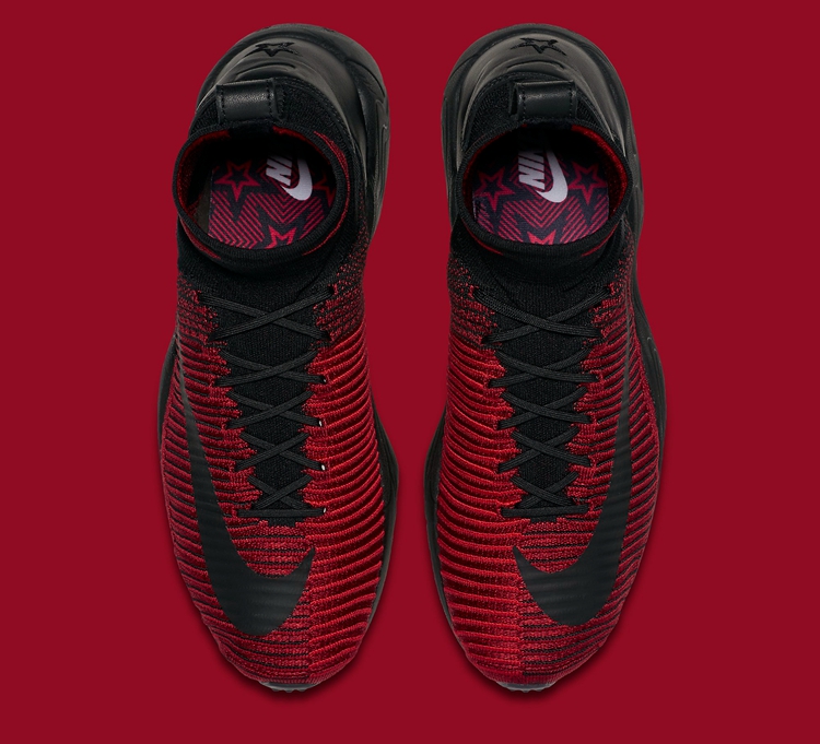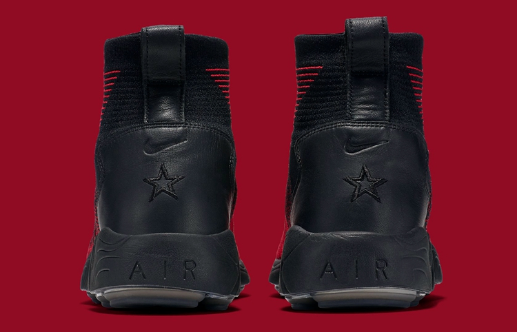眼前这款 Nike Zoom Mercurial Flyknit 则以经典的黑红配色呈现出强烈的视觉冲击,皮质后跟上压纹 Swoosh 与五角星的点缀在不经意间增添了一分劲酷的潮流气质。波浪形 zoom Spiridon 大底,不仅带来了全新的视觉层次更彰显出这款全新鞋型的运动气质。