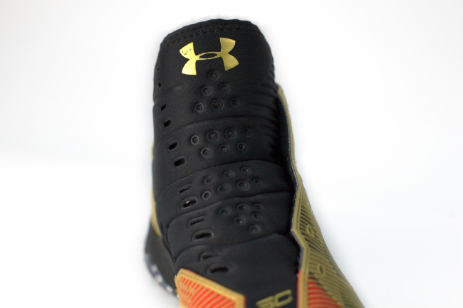 脚踝处的 Under Armour 标识与后跟处大 Logo,凸显出球鞋身份。