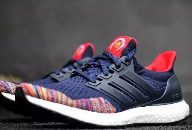 这款 adidas Ultra Boost 猴年限定,作为中国的新年配色,除了鞋舌的 “悟” 字样,深蓝鞋身搭配多彩鞋头也是颇具视觉吸引力。鞋身辅以黑色的支撑框架,红色的内衬则凸显了中国新年氛围,颇为特别的鞋舌 “悟” 字标签装饰,鞋头部分则以 Multi Color 多彩编织点缀。