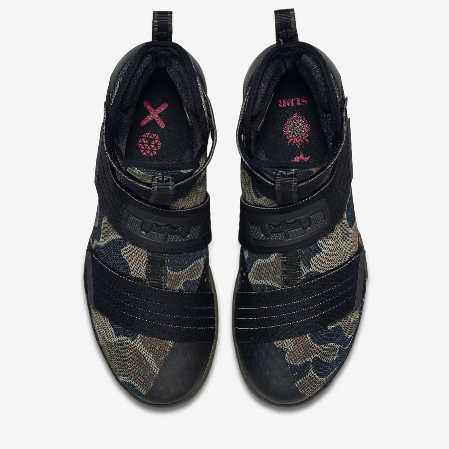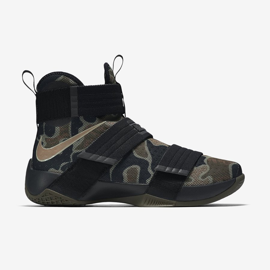 LeBron James 今天在自己的 Instagram 上亲自推荐了这款军事迷彩配色的战靴! 图中他亲着上脚的这双 Nike LeBron Soldier 10 “Camo” 已经在 Nike.com 发售,也是他此前的中国之行的主推款式。发售价为 ¥1199,目前在 Nike 官网上还有售卖,有兴趣的朋友不妨点击进入。 货号:852400-022