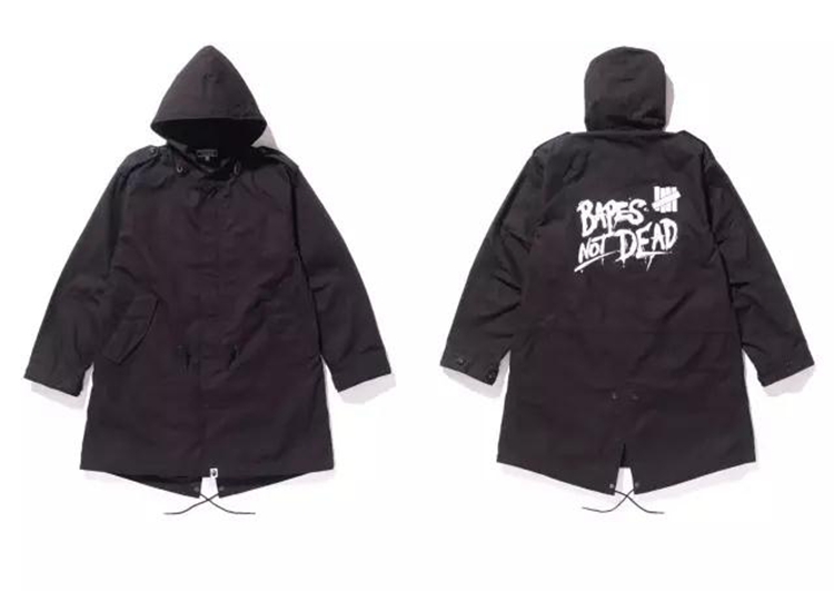 而此番双方以朋克摇滚为设计灵感,融入了 Undefeated 标志性的“栅栏” Logo 和 BAPE 独有的迷彩及猿人图像,打造多款潮流单品,其中包括:鲨鱼拉链外套、风衣、卫衣及 T 恤等。