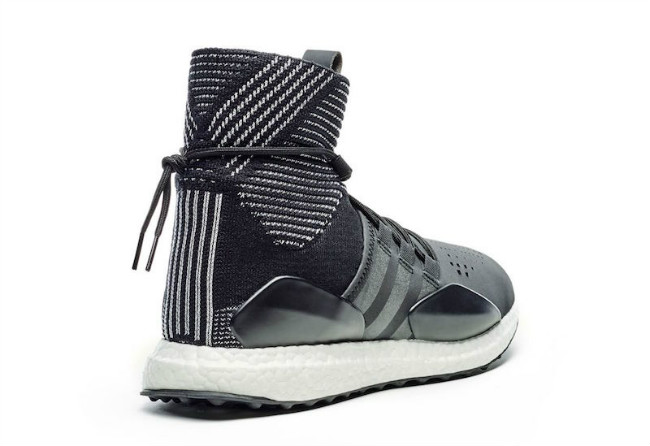 该系列都以黑色为主色调,提升设计使产品看起来既简洁又大方。袜套鞋领的黑白 Primeknit 搭配鞋面弹性软壳和镶嵌式 TPU ,鞋底依然采用纯白 Boost 中底搭配马牌外底。