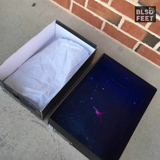 虽然与 09 款同样采用抽屉式鞋盒,但是空中大灌篮的主题贯穿 Air Jordan 11 “Space Jam” 16 款全新鞋盒。防潮纸与鞋盒上清晰印着数字 45,鞋盒内红色的 Jumpman 标志显现在星空之中,还有兔八哥与怪兽的手臂组合在一起的数字 23,数字 11 是由点阵图形印在塑料盖上。该鞋盒可以称得上是用心良苦的精品之作。