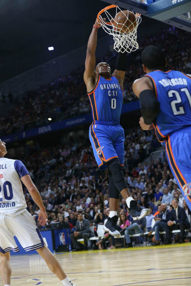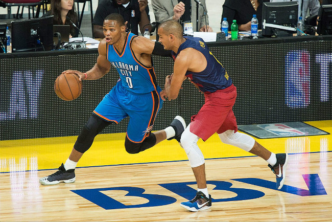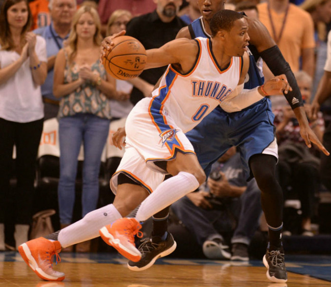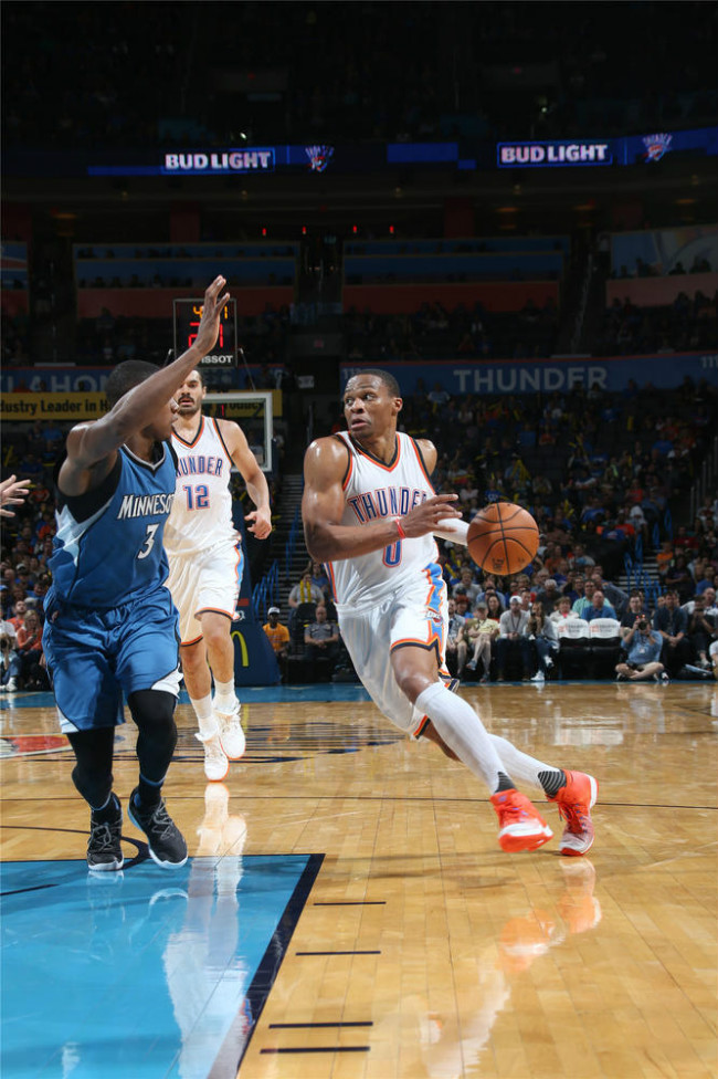 北京时间10月17日,NBA季前赛雷霆对阵森林狼。雷霆队当家球星维斯布鲁克终于上脚 Air Jordan XXXI 进行比赛?