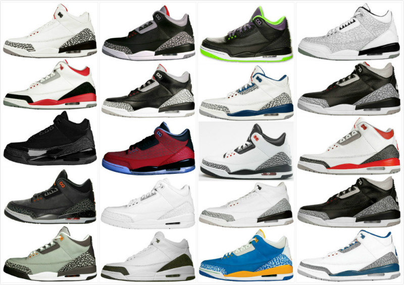 目前 Air Jordan 3 一共市售 39 款(包括复刻配色相同款式,但不包括 GS 款式),市售中一共出现 23 款不同配色。