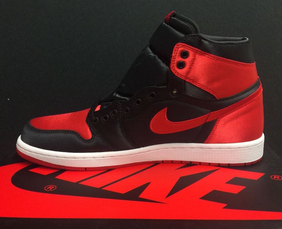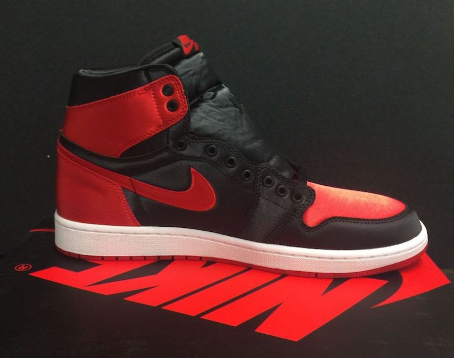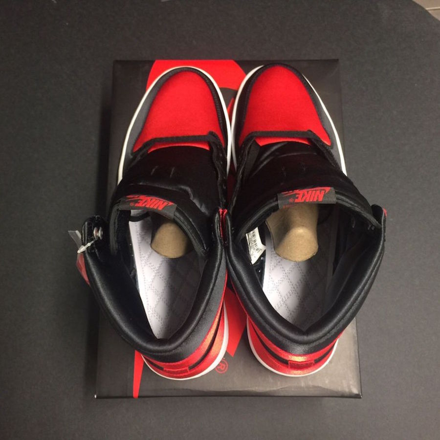 采用了绸缎面料打造,也是契合了配色名称中的 Satin 字样。配色方案则与 Bred 同出一辙,除了独特的质感光泽,鞋头并没有透气孔,鞋垫也是全新的皮革车线打造。