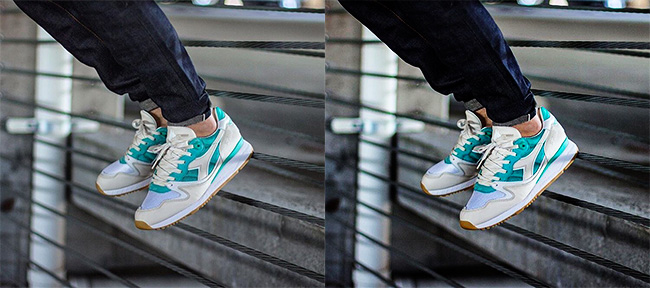 Sneaker 球鞋是主角,其他的配角都要靠边站,如果拍摄环境比较复杂,有太多元素入镜的话,选择背景虚化则能达到高级专业相机的镜头效果!