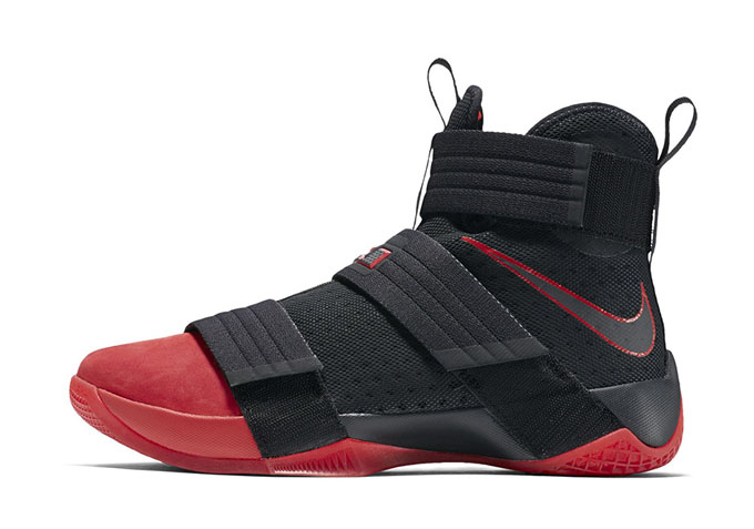 随着冠军套装的发布,Nike LeBron Soldier 10 即将推出全新的黑红配色。