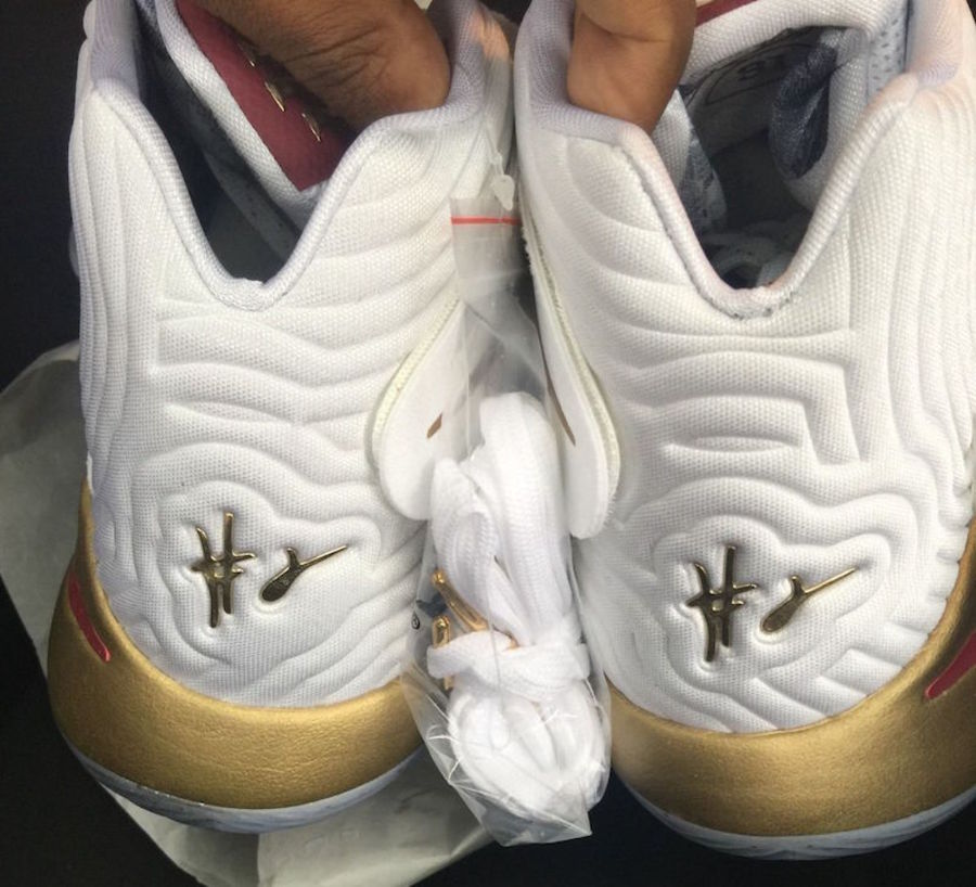 眼前这个 Game 3 套装就是 Nike LeBron Soldier 10 “Black” 和 Kyrie 2 白金配色。10 月 22 日已经在美国发售,中国区将于 10 月 23 日登陆 Nike.com 中国官网,值得关注!而 Game 4 将在 10 月 26 日正式登陆官网。
