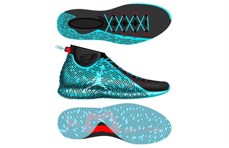 狮子座,双子座,金牛座和水瓶座的符号被蚀刻在鞋子的鞋拱处,分别代表保罗家庭的所有成员——他的女儿,儿子,妻子和他自己。此外,七个代表保罗在做为 Jordan 品牌运动员期间的成就的符号被蚀刻在另一边的鞋拱。两边的符号一起,代表了保罗的家庭和在球场上的表现。