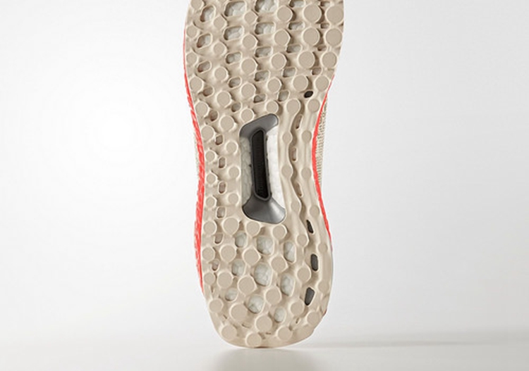 该鞋采用大热的 “Tan” 色 Primeknit 织物鞋身搭配同色系后跟稳定器,取消了 TPU 鞋带 Cage 后,造型更显修长,结合太阳红配色的全掌 Boost 中底,营造出极为鲜艳的视觉冲击。