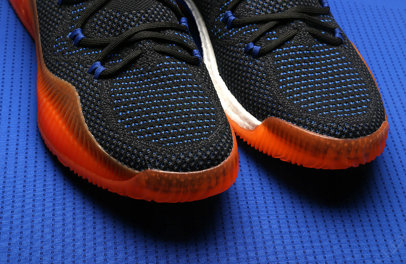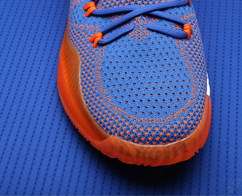 今日常规赛第一场骑士对阵尼克斯,波神上脚蓝色鞋面橘黄色鞋底的 CrazyExplosive 专属 PE 版。