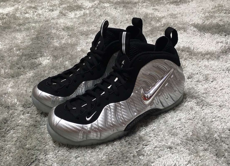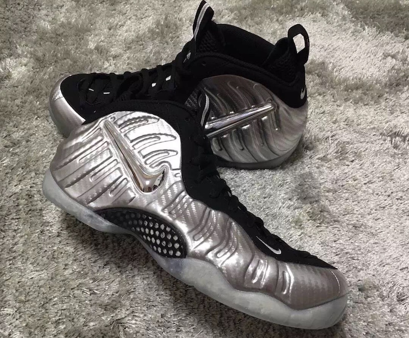 Air Foamposite Pro PRM “Silver Surfer” 采用银色碳纤维纹路发泡鞋面,搭配黑色鞋领与透明水晶大底, Nike Swoosh 采用电镀银色。