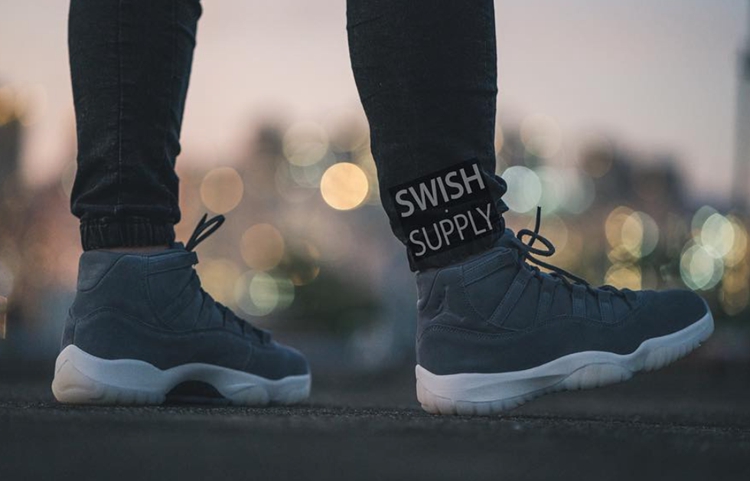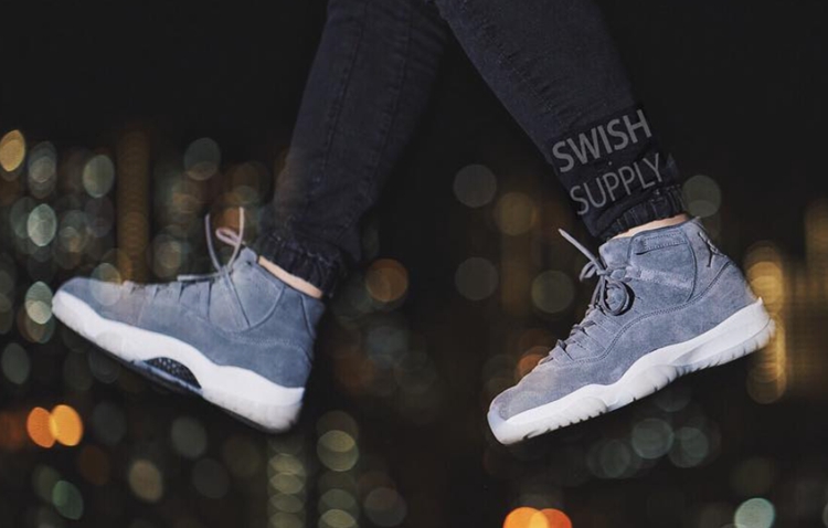 头顶“史上最贵”光环的 Air Jordan 11 PRM “Grey Suede” 一反传统,采用整洁的麂皮材质替代原有漆皮呈现,与乳白色水晶外底带了低调奢华的视觉感受。 鞋帮的冲压式 Jumpman Logo 、后跟消失的数字号码,以及皮革切割制成的鞋带,跳脱出运动鞋的前卫印象,那一分休闲气息彰显无疑,上脚效果极为不俗。 Air Jordan 11 Premium “Grey Suede” 货号:914433-003 发售日期: 2016 年 年底 发售价格: $400 美元