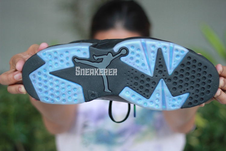 从目前释出的图片看,鞋身将采用一席黑色覆盖,而通过处理后会展示出湖绿色的第二色彩。鞋身细节同样出色,烟熏风格鞋带头搭配 3M 反光透气孔,鞋舌织物的纹路同后跟六边形 “Jumpman” Logo 呼应,质感不俗。