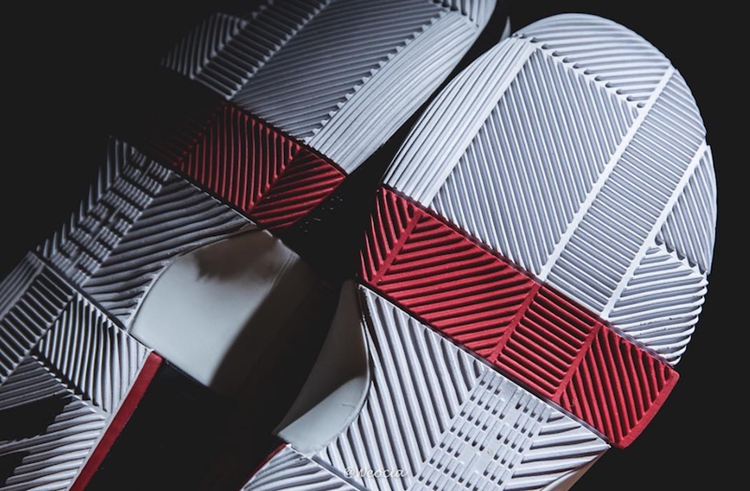 眼前这款球鞋最吸引眼球的无疑是夸张的鞋舌和鞋身大面积鞋带扣侧翼。缓震目前看依然延续着 adidas Bounce 科技,依据惯例,也许个别配色会推出 Boost 系统。