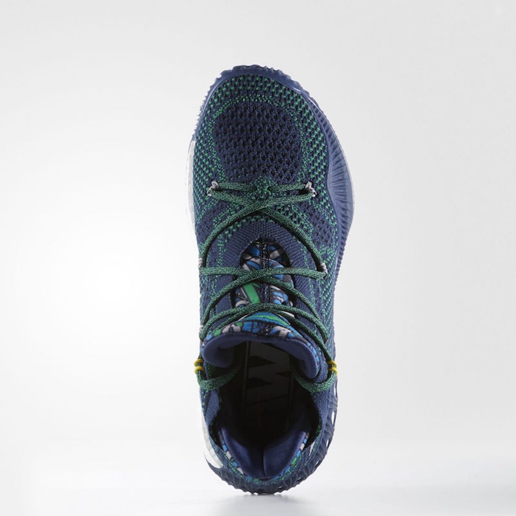 该鞋采用蓝绿相间的 Primeknit 透气织物鞋面搭配全掌 Caged Boost 缓震科技。鞋舌秀有安德鲁·维金斯的个人专属 Logo 以及加拿大枫叶点缀。