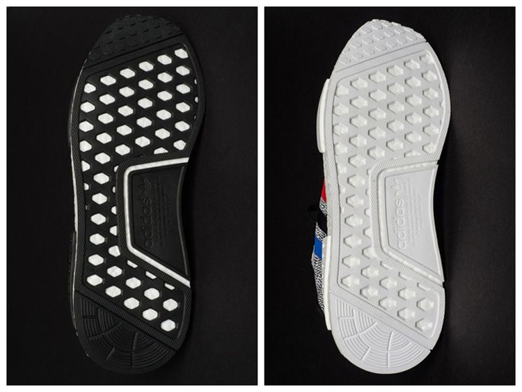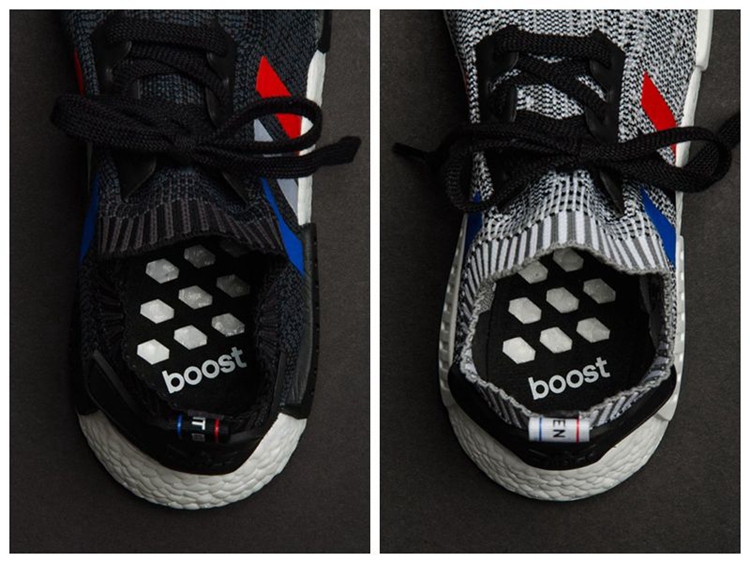 除了鞋身以抢眼的彩色三线点缀外,后跟鞋提以红、蓝双色条纹装饰,而 NMD 独步天下的招牌式稳定块则与鞋身采用同色系呈现,最后搭载上全掌 Boost 中底收尾。