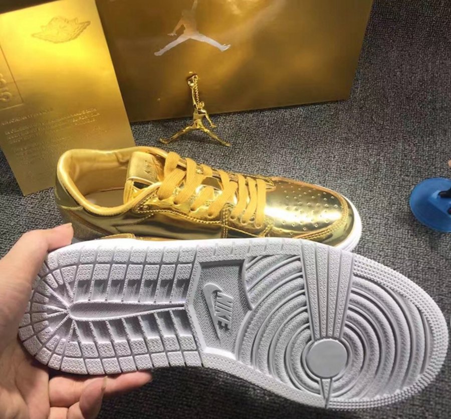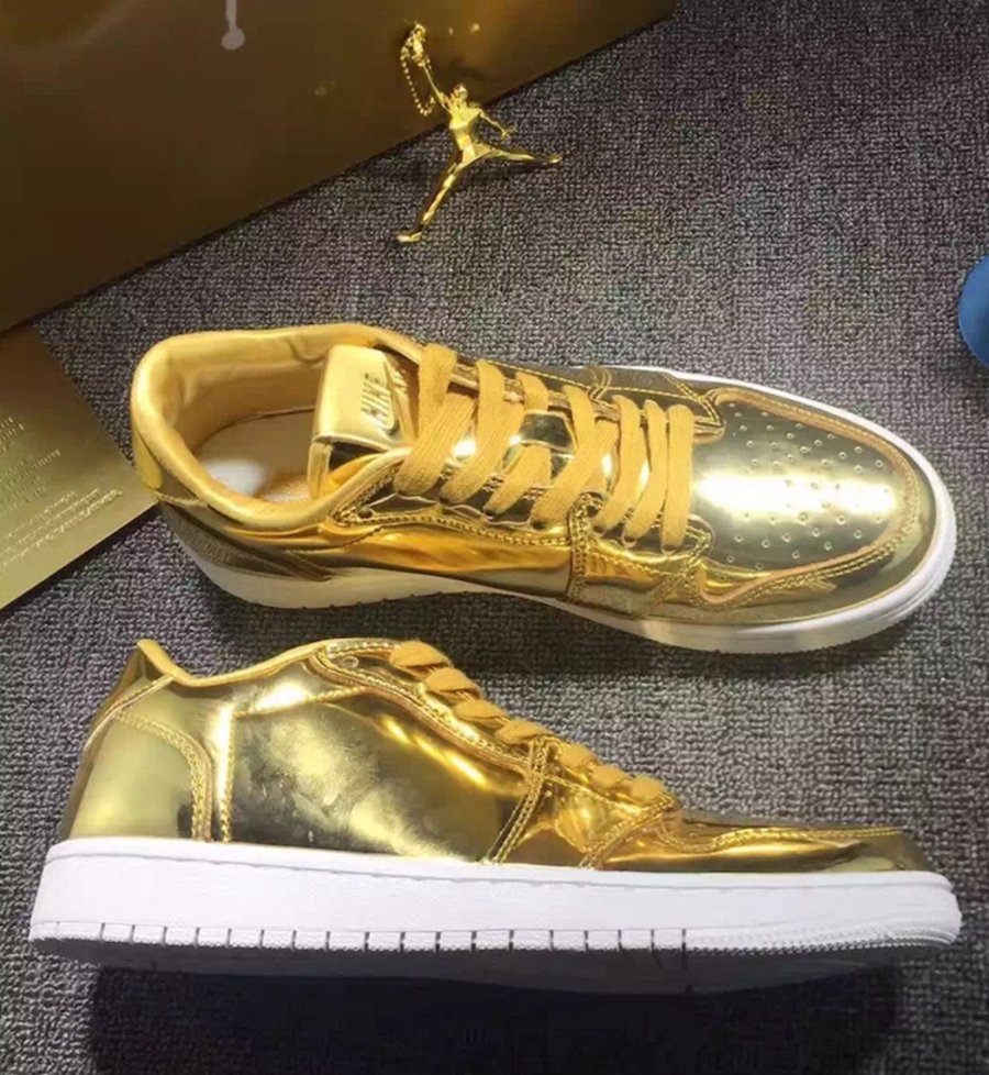 随着此前金黄示人的 Air Jordan 6 Pinnacle “Metallic Gold” 火爆发售后,近日一款同样风格的 Air Jordan 1 Low 又展现到我们面前。