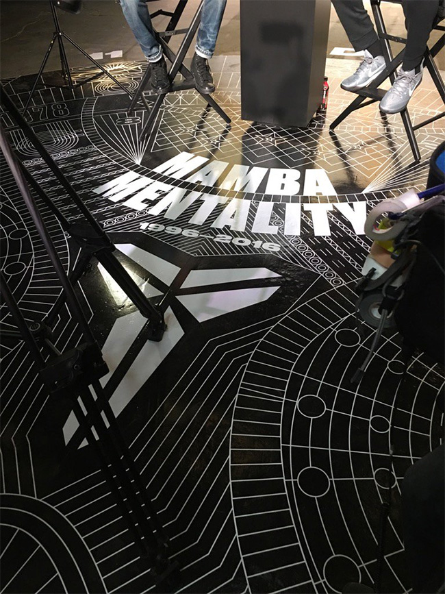 科比在发布会现场已经是上脚了 Kobe A.D. “Cool Grey”,现场也有 Mamba Mentality 1996-2016 的字样,表达了曼巴精神 20 年的意思。