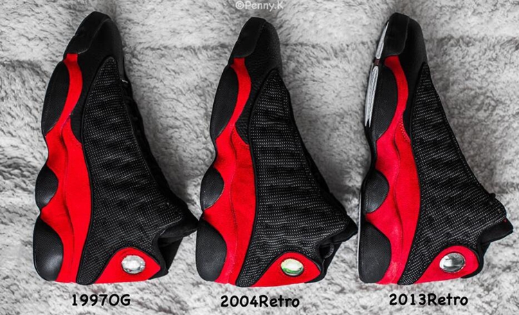 自从 1998 年发售以来,Air Jordan 13 “Bred” 经历了 2 次复刻,分别是 2004 年和 2013 年,而 13 年复刻的版本不知为何取消了 3M 的反光鞋身设计,着实让人无法接受。