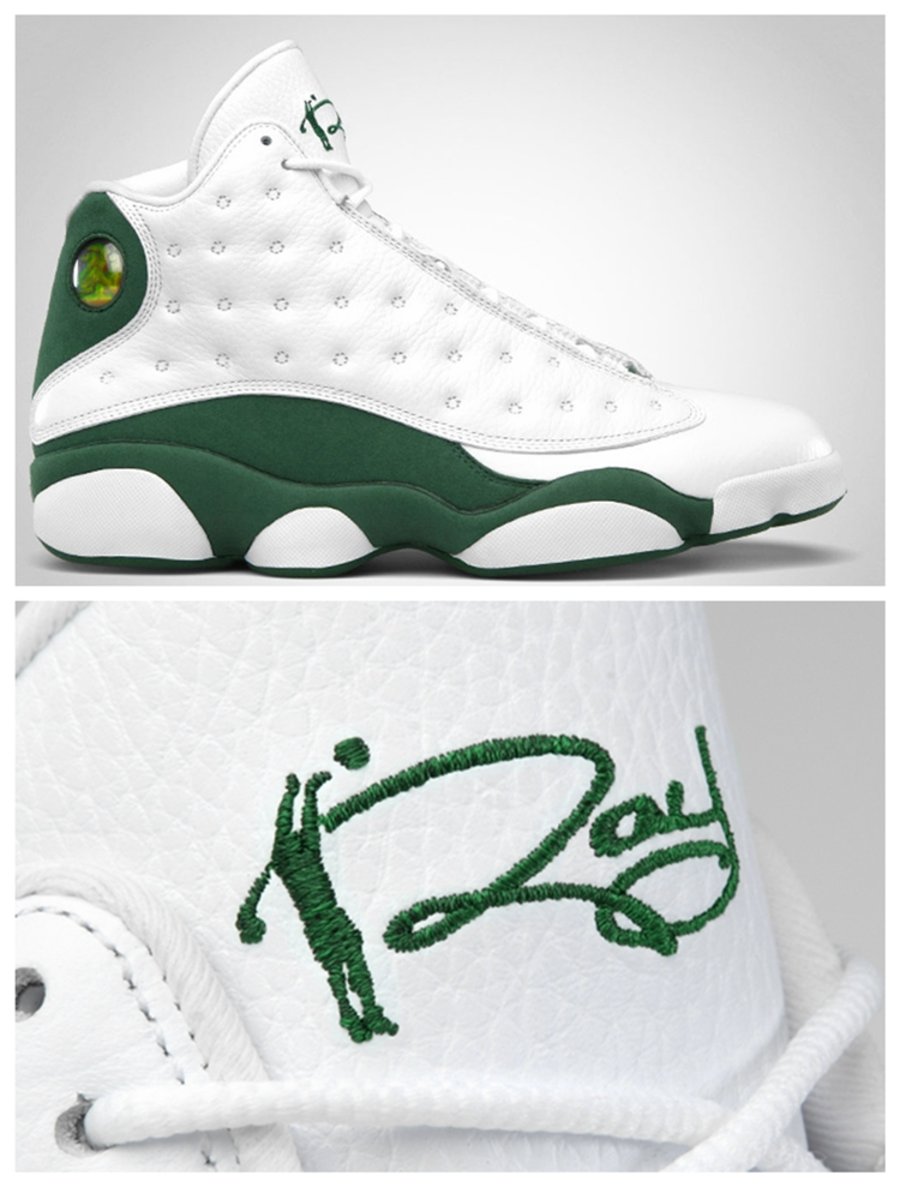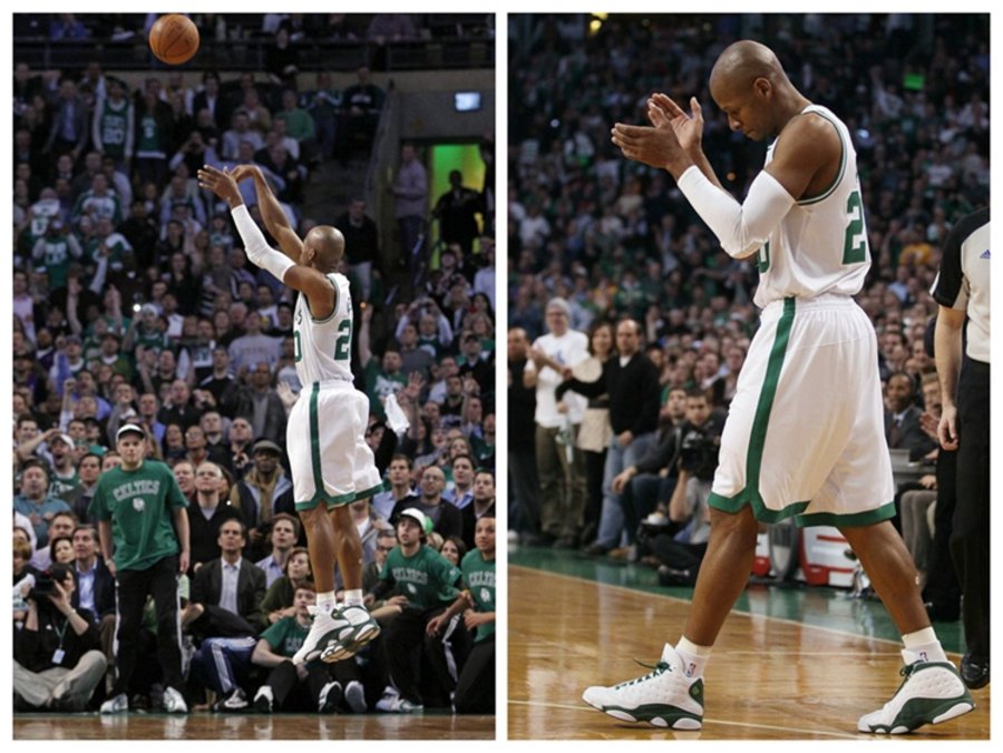 雷·阿伦作为 Jordan Brand 的中流砥柱,脚下的球鞋自然是鞋迷们关注的焦点。眼前这款 Air Jordan 13 “Ray” PE 不仅作为雷·阿伦效力凯尔特人期间的主场配色,更具有另外一层特殊的意义。