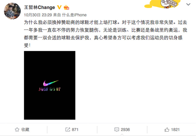 赛后周琦和王哲林都对此发微博,认为篮协不该限制自己穿什么球鞋。