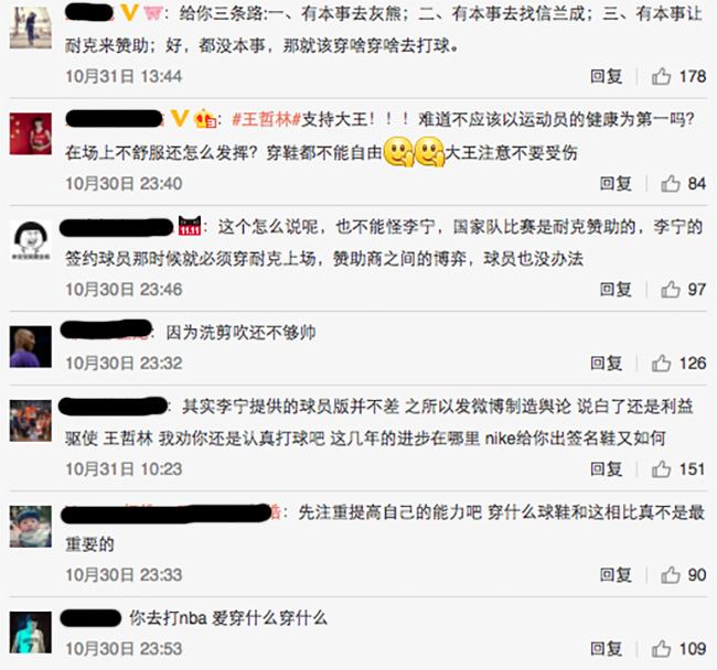 ▽ 王哲林微博下方热评