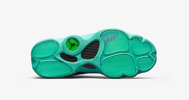 女款的清爽无敌,无论男女都会倾心不已!恐怕也是 Air Jordan 13 十三代中最清爽最小清新的装扮了!发售价 ¥999,目前淘宝预售价格在 ¥1200 RMB 左右。