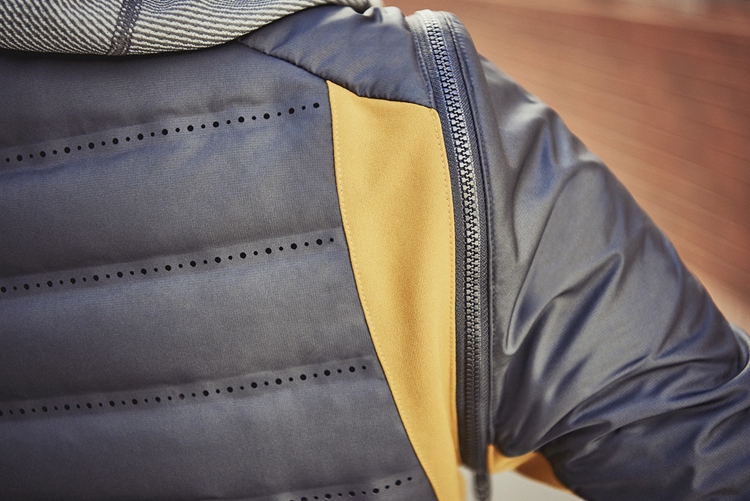 NikeLab Gyakusou Zipoff Aeroloft Jacket 衣身采用耐克 Aeroloft 技术,在保暖的同时还可以起到调节体温的作用。它的原理是锁住热量,直到人体开始产生热量。一旦人体开始生热后,多余的热量和水汽就会从衣服上战略分布的激光穿孔排出去。衣袖采用 Quickburst® 拉链技术,跑步者可以不费吹灰之力脱掉衣袖,将夹克变成一件背心。夹克背部的口袋足以收纳衣袖,使跑步者可以继续跑步,不受任何干扰。