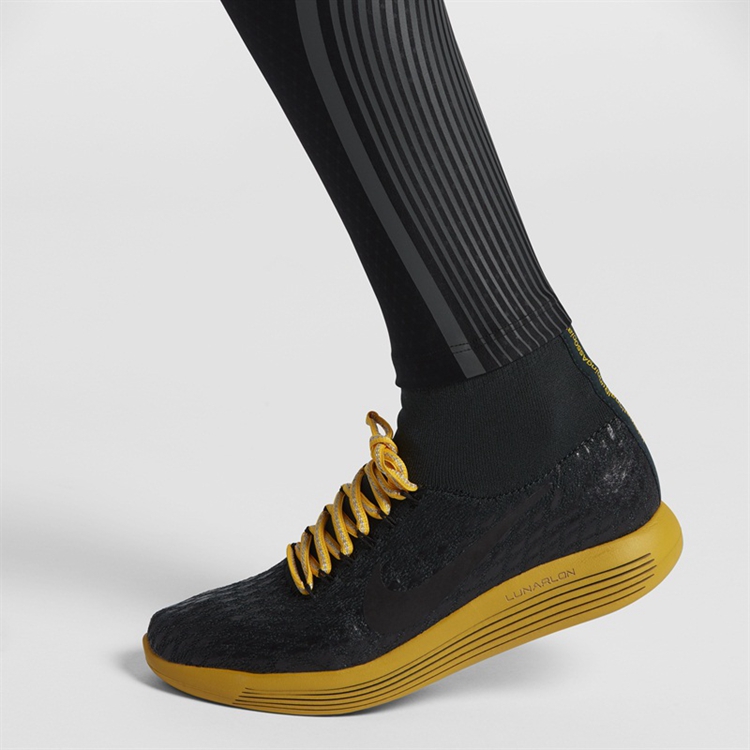 NikeLab Gyakusou LunarEpic Flyknit Shield 跑鞋:Nike LunarEpic Flyknit Shield 由高桥盾的创意笔触点化而成。防水内靴可以使跑步者的双脚保持温暖干爽,Flyknit 面料则由持久耐用的防水层加以覆盖。