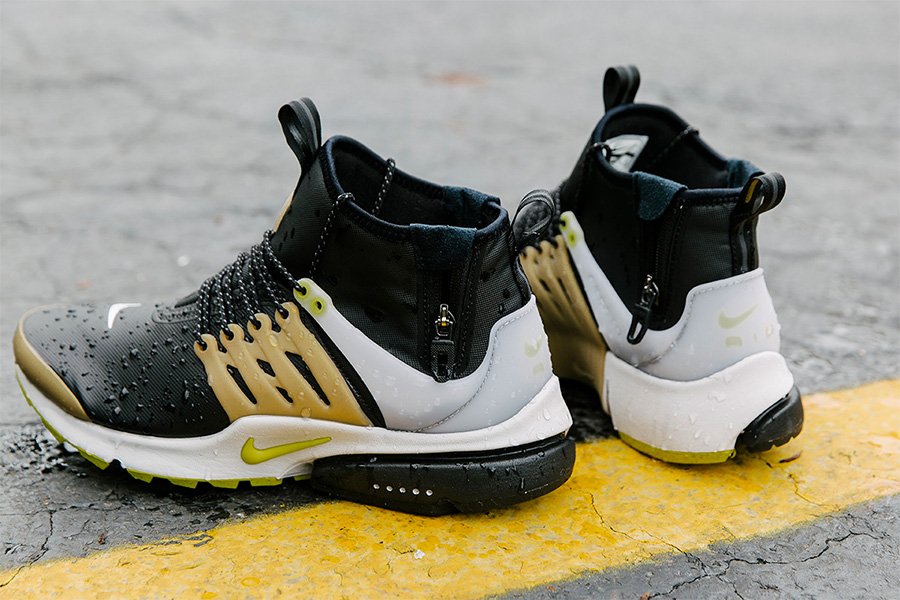 今年 Nike Air Presto Mid Utility 基于经典鞋型全面进化为机能玩家,不仅带来了鞋帮高度的提升,DWR 防水涂层运用于鞋面,使其具备了极佳的户外实用性能。 而鞋帮内外侧的双拉链设定,则让穿脱十分的方便快捷,充分诠释了 “机能” 含义! 眼前这款配色则完美再现了 Air Presto 在元年发售时的 Brutal Honey 装扮,黑色背景之下的黄色和金色注入,沉稳之余又带有独特亮点! 目前已经登录 Nike.com 中国官网,点击查看详情。 货号:859524-002