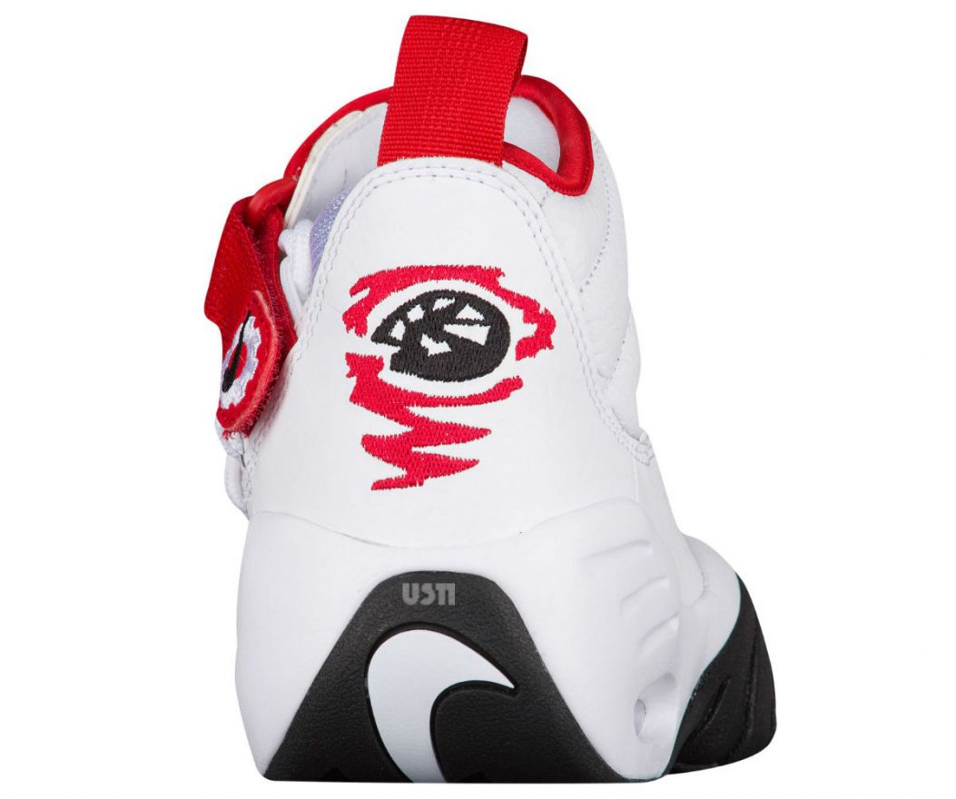 这双 Nike Air Shake Ndestrukt 是由设计师 Eric Avar 在 1996 年设计的,鞋面正上方缝制巨大的 Nike Swoosh,而球鞋系带系统则移到内侧,这样与众不同的设计很符合大虫的性格。