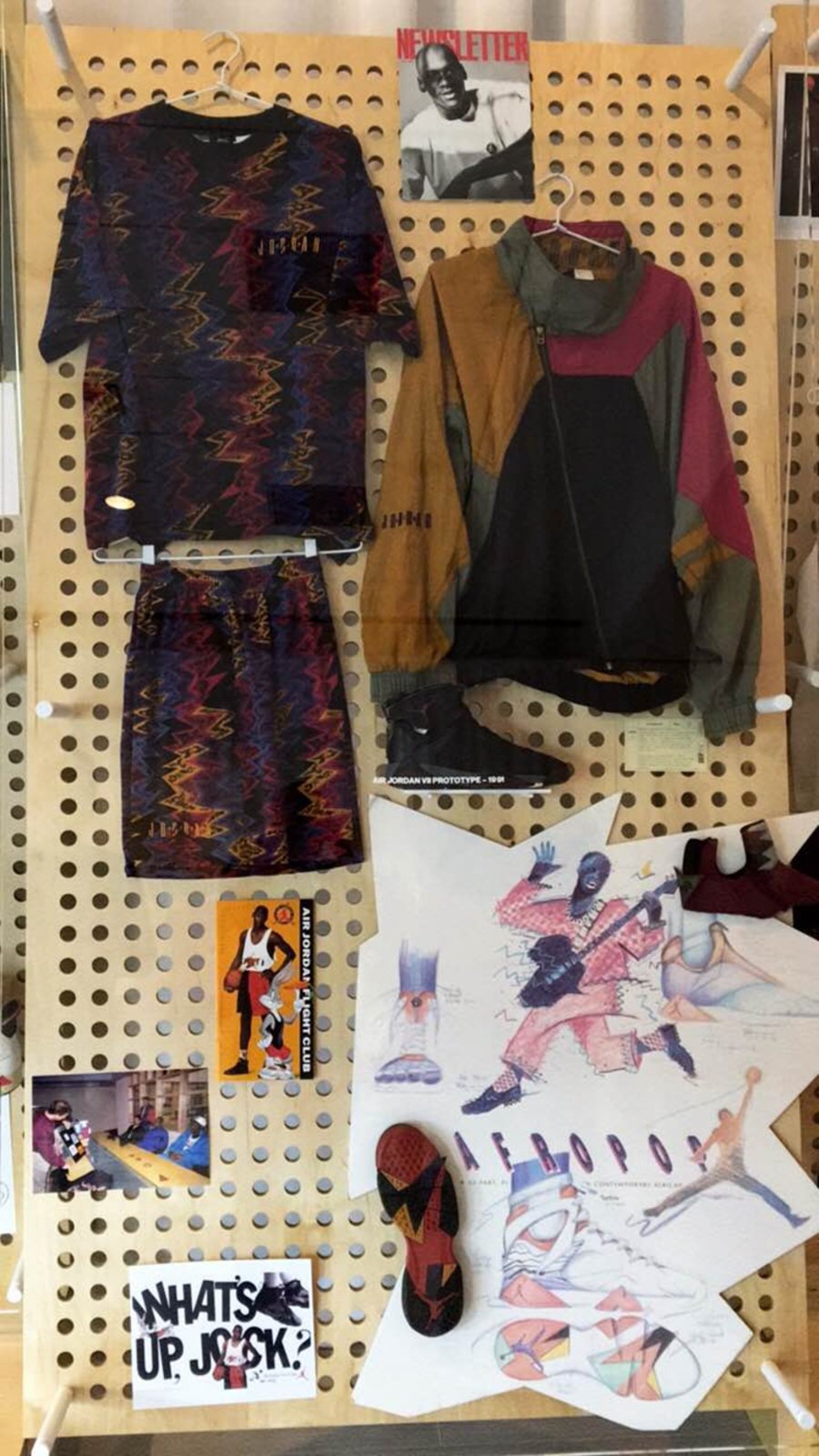 展厅内除了展示出乔丹亲着的服装和亲签元年球鞋外,曾经球鞋的设计图稿也得以曝光示人,颇为引人关注。